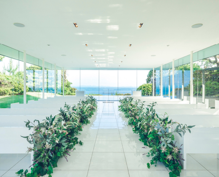 瀬戸内海の水平線を見渡す光あふれるチャペルとモダンなパーティ会場を新設し、新郎新婦の喜びの門出を祝福する結婚式場として利用されています。レストランでは季節の彩り豊かなフレンチが堪能できるなど、現在も大切なときを華やかに輝かせています。